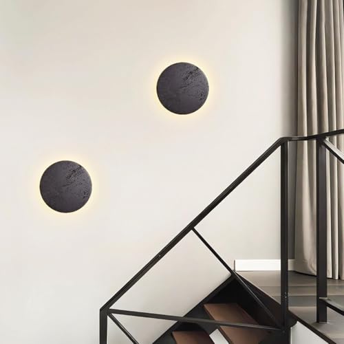 Black Travertine Wall Sconce - Japanese Wabi Sabi Style Minimalist Hardwired Natural Stone Lamp for Living Room, Aisle, Stairs, Balcony - Modern Farmhouse Decor