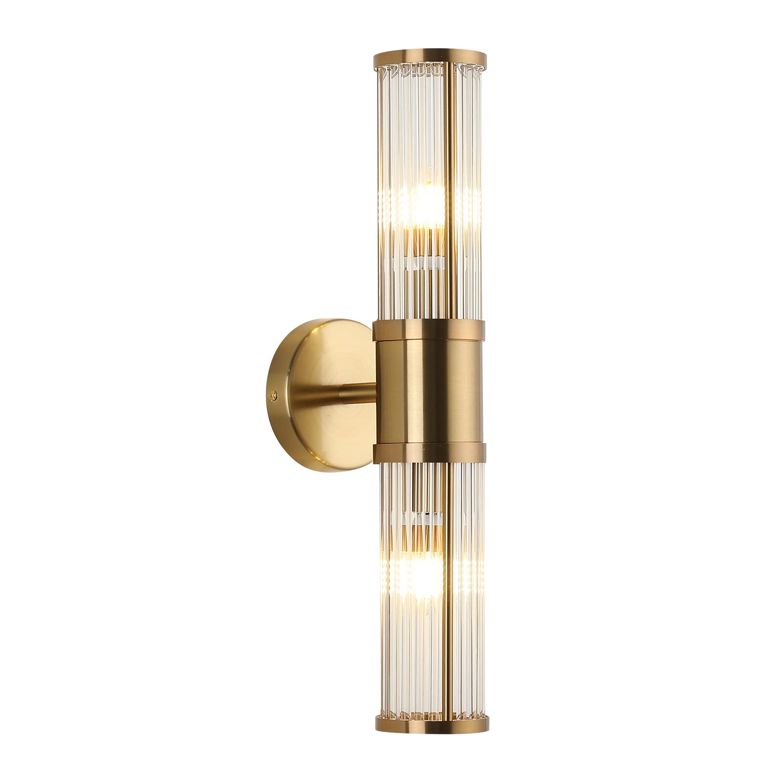 ECOBRT Glass Rods Wall Light Fixture Indoor Brass Bathroom Vanity Lights Beside Mirror Lighting Lamps Up and Down Wall Mounted Light E12 Socket
