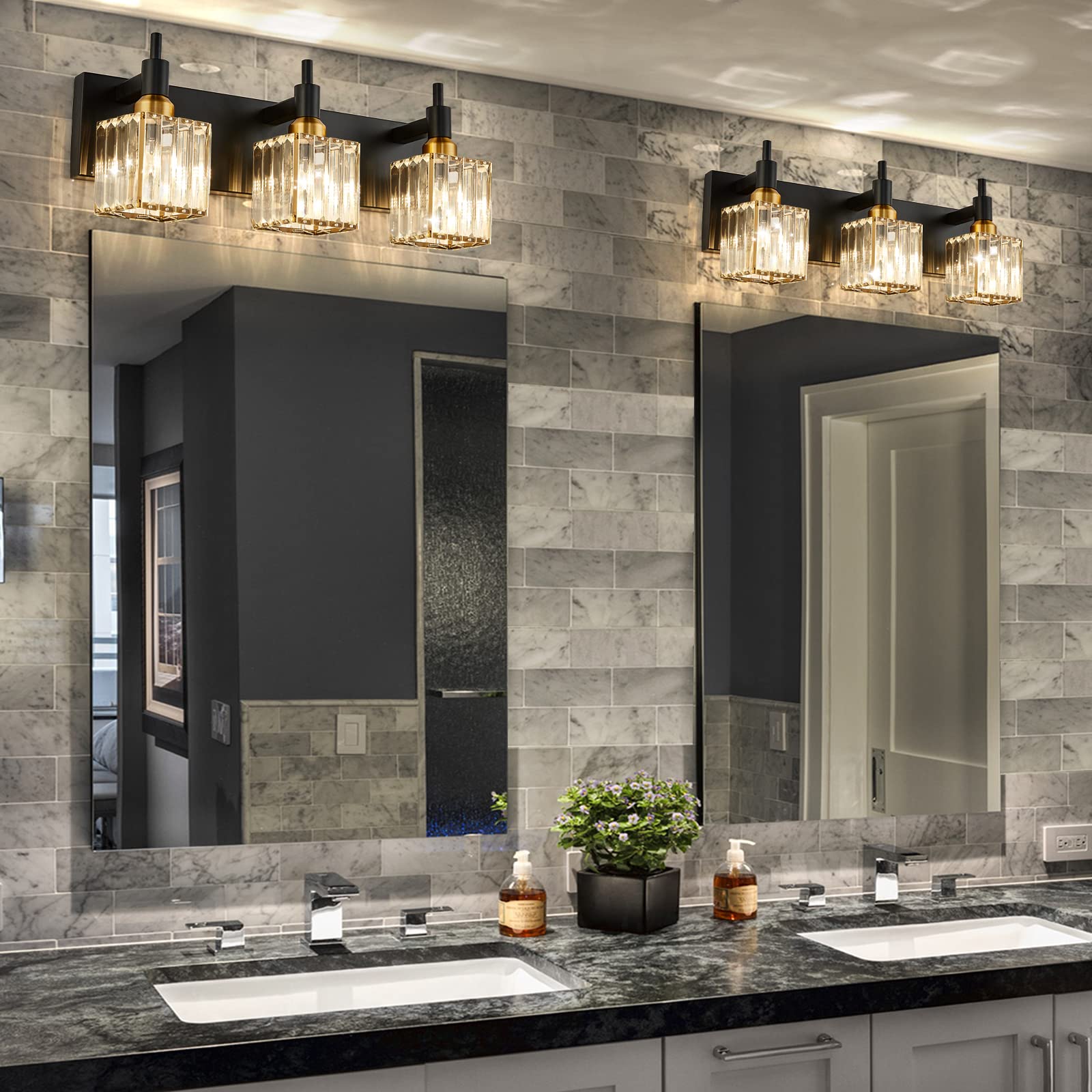 - 【Modern & Unique Crystal Design】Featuring a matte black metal structure and high-quality crystal cover with special cutting, this crystal vanity light fixtures will bring more exquisite and luxurious to your home. Anti-corrosion and moisture-proof, strong, and long life