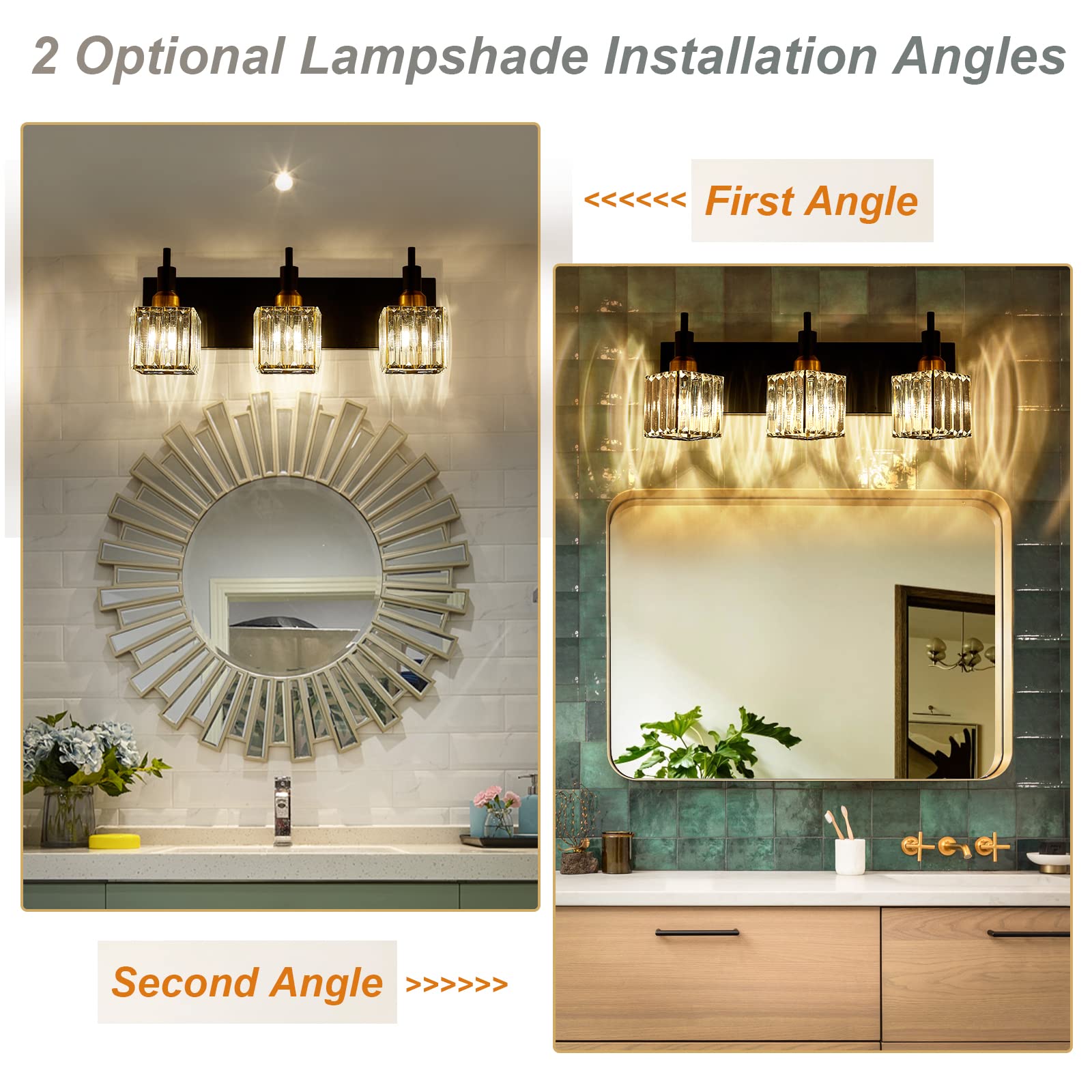 - 【After-Sale Service】Each of our crystal bathroom lights comes with a 12-month service. If you have any questions, please contact us without hesitation, we will resolve the issue for u within 24hrs