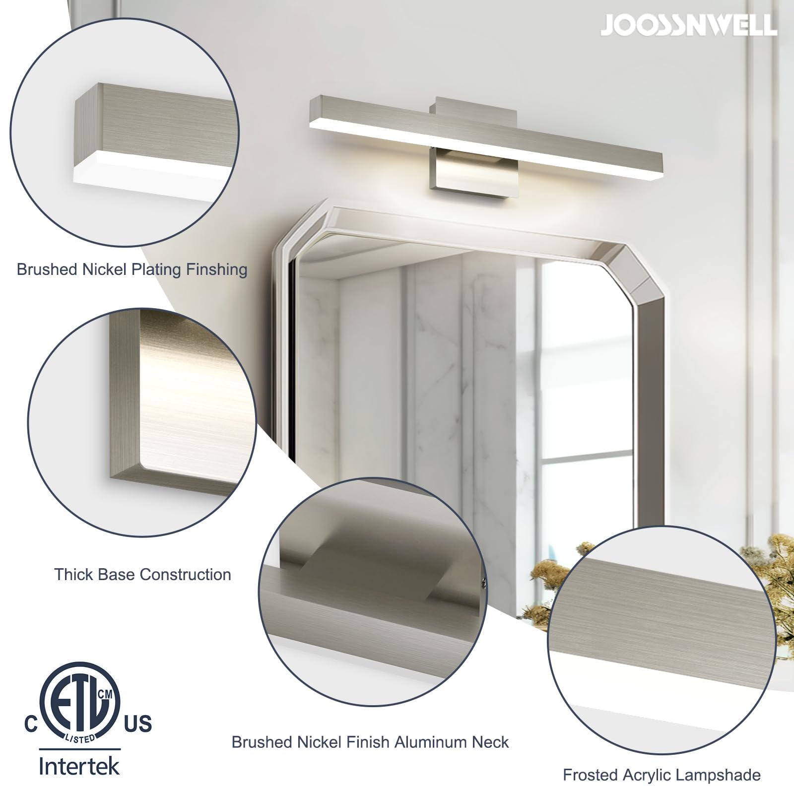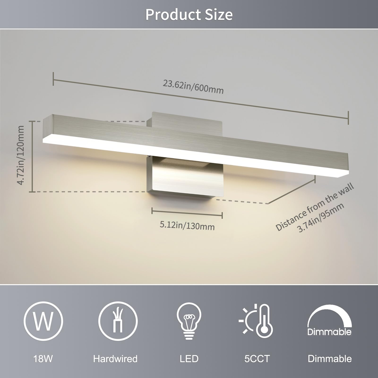 Joossnwell Bathroom Vanity Light Brushed Nickel Bathroom Light Fixtures Over Mirror 23.62 inch 5CCT Dimmable Modern LED Vanity Lighting Bar ETL Certificated